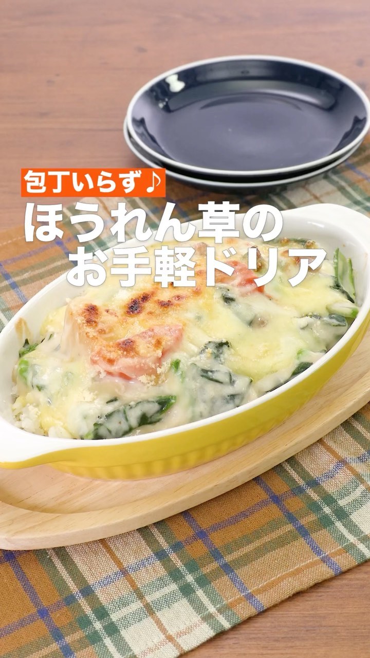 動画の詳細が気になる人はアプリで「ほうれん草のお手軽ドリア」で検索してみてくださいね♪