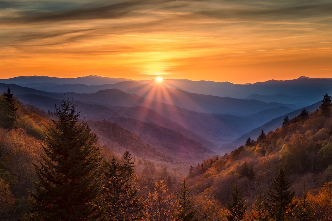 Photo by @lgfortem: “I drove for an hour in the dark to this location in Great Smoky Mountains National Park. 45 minutes before sunrise and the colors in the sky were absolutely amazing. I took many photos before the sun poked through, but this one was my favorite because I loved how the light illuminated the mountain layers and the trees in the foreground.” #ShotOnCanon