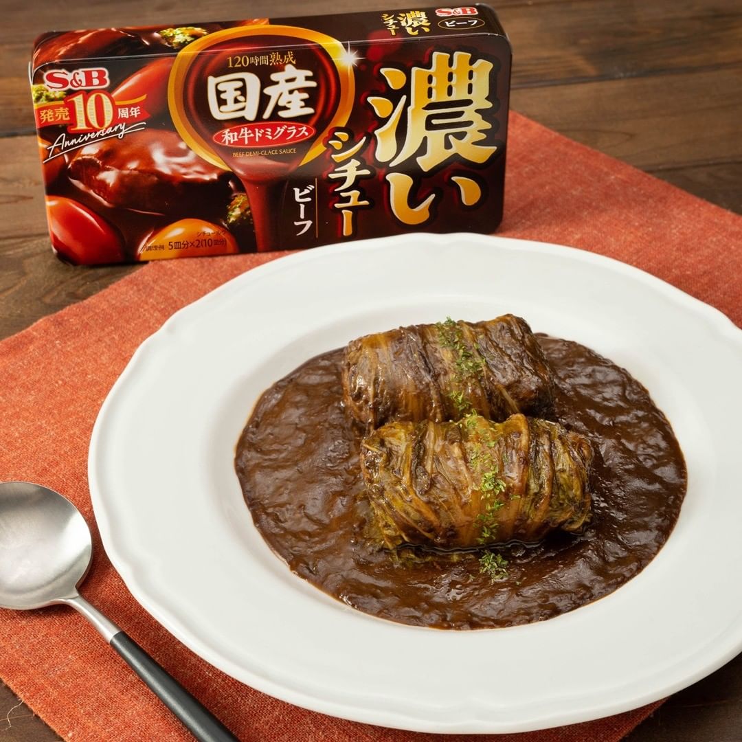チョコレートが隠し味!デミシチューで煮込むロール白菜はいかがですか?簡単に濃厚な味わいを楽しめる「S&B 濃いシチュー ビーフ」にミルクチョコレートを加え、よりコク深い味わいに仕上げました。とろとろに煮込まれたロール白菜がやみつきになること間違いなし!ぜひお試しくださいね。