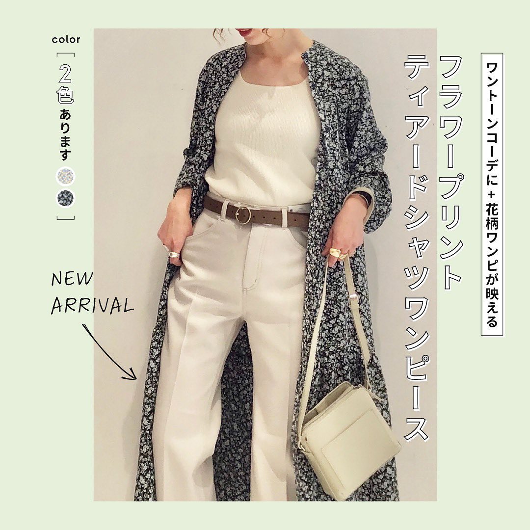 バンドカラーですっきり大人な表情に仕上げたシャツワンピース。