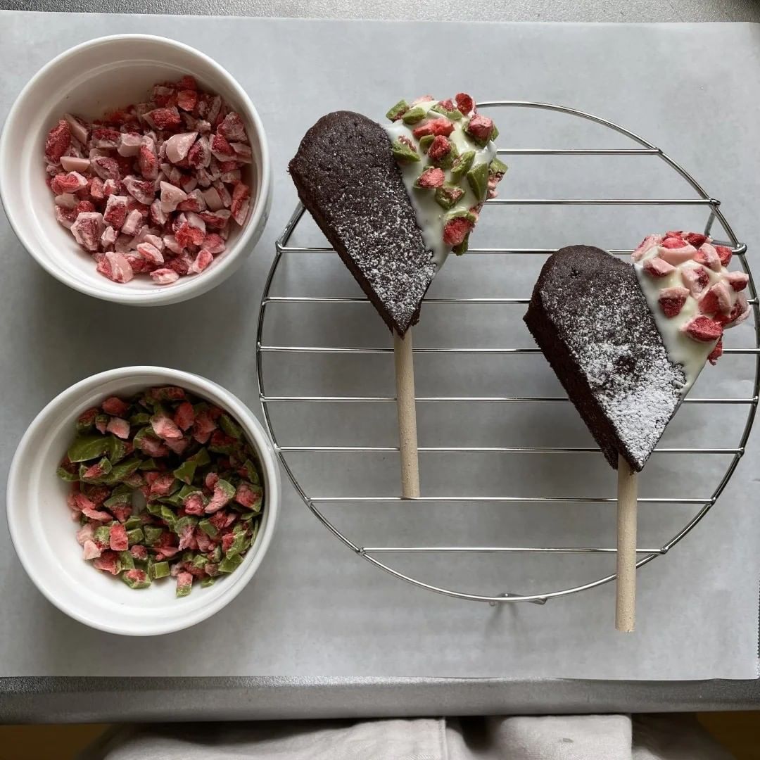 ガトーショコラにスティックを差すことでこどもも食べやすく、見た目もかわいらしいのでホームパーティにもピッタリです。