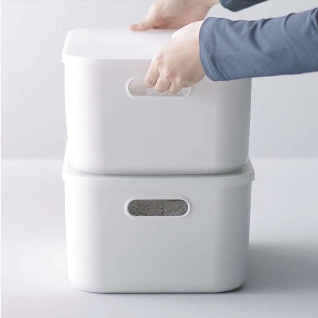レイアウトの自由度が高く、フタと組み合わせた重ね置きでは収納スペースを上手に増やすこともできる、箱型の収納。