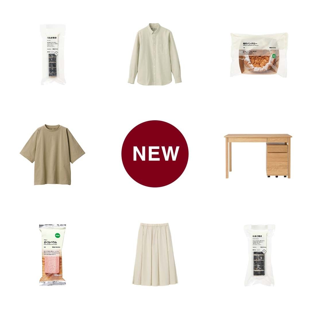 鹿児島県産うなぎのかば焼きを甘めのたれで炊いたごはんで巻いたうなぎ巻き、ほのかな桜の風味が楽しめる不揃いさくらバウム、綿本来の風合いを生かすために洗いざらしで仕上げたオックスボタンダウンシャツなど、さまざまな新商品が揃っています。