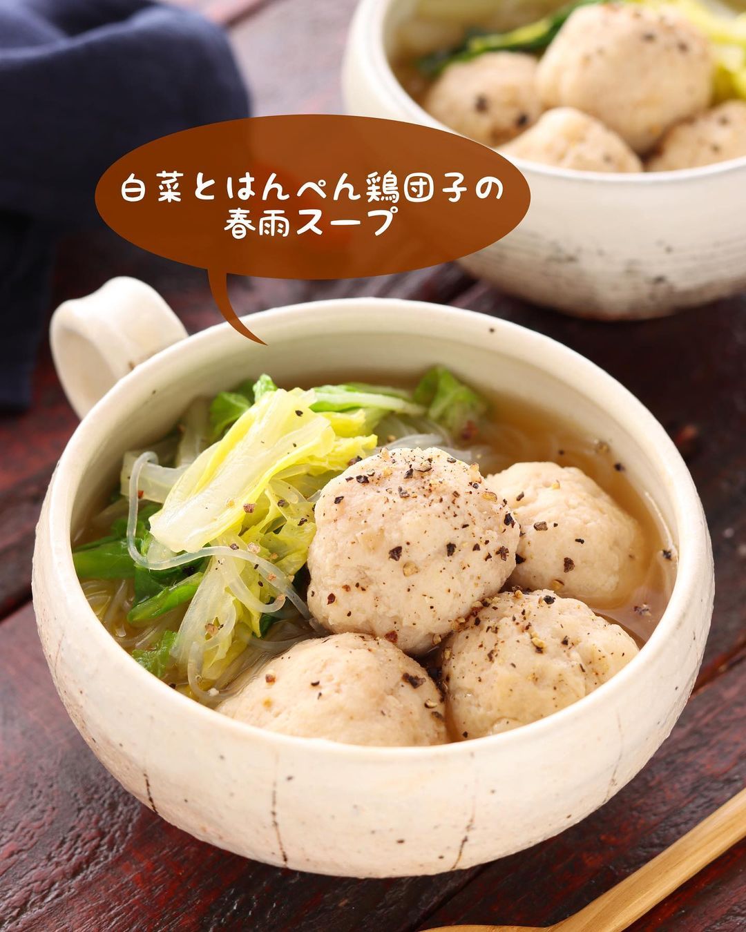 𓎩 #白菜とはんぺん鶏団子の春雨スープ
