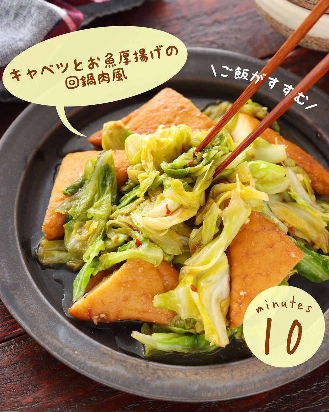 𓎩 #キャベツとお魚厚揚げの回鍋肉風