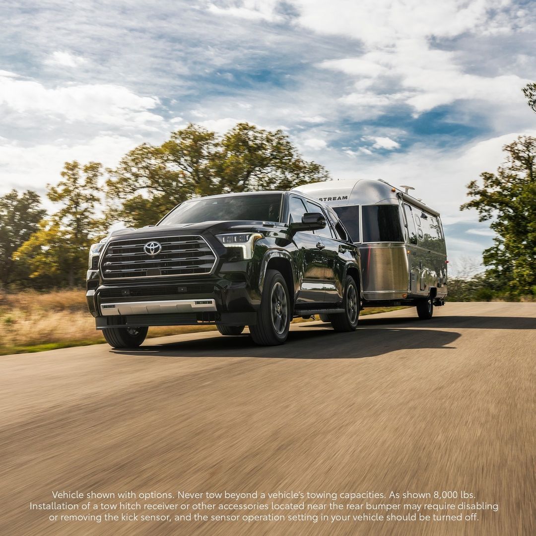 With a maximum towing capacity of up to 9,000 lbs, the all-new 2023 #Sequoia makes sure you can take anything along for the ride! #LetsGoPlaces