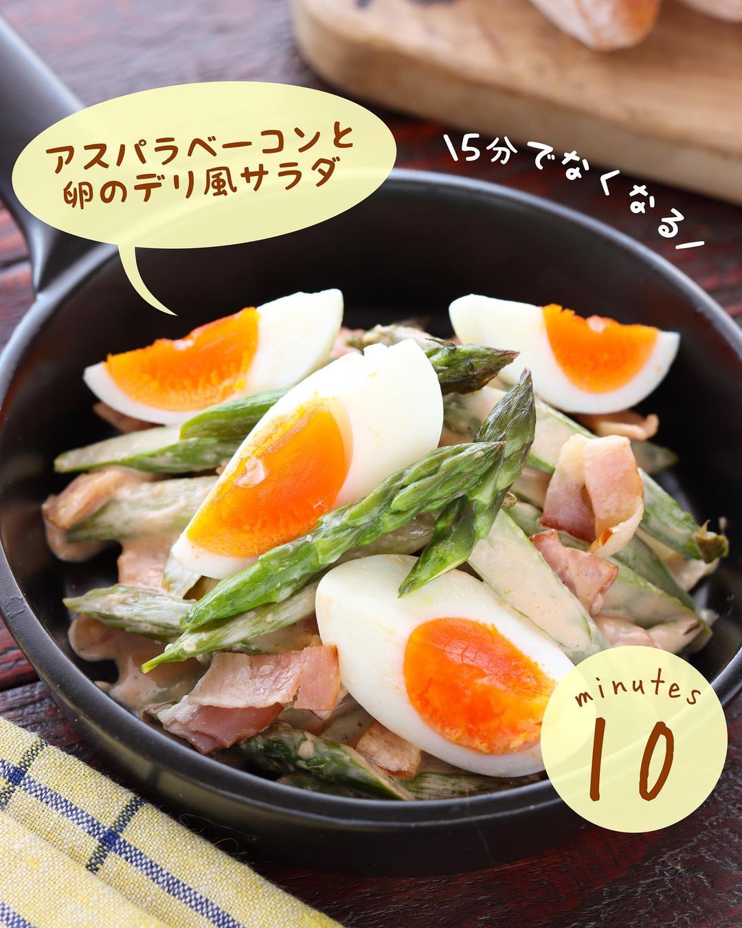 𓎩 #アスパラベーコンと卵のデリ風サラダ