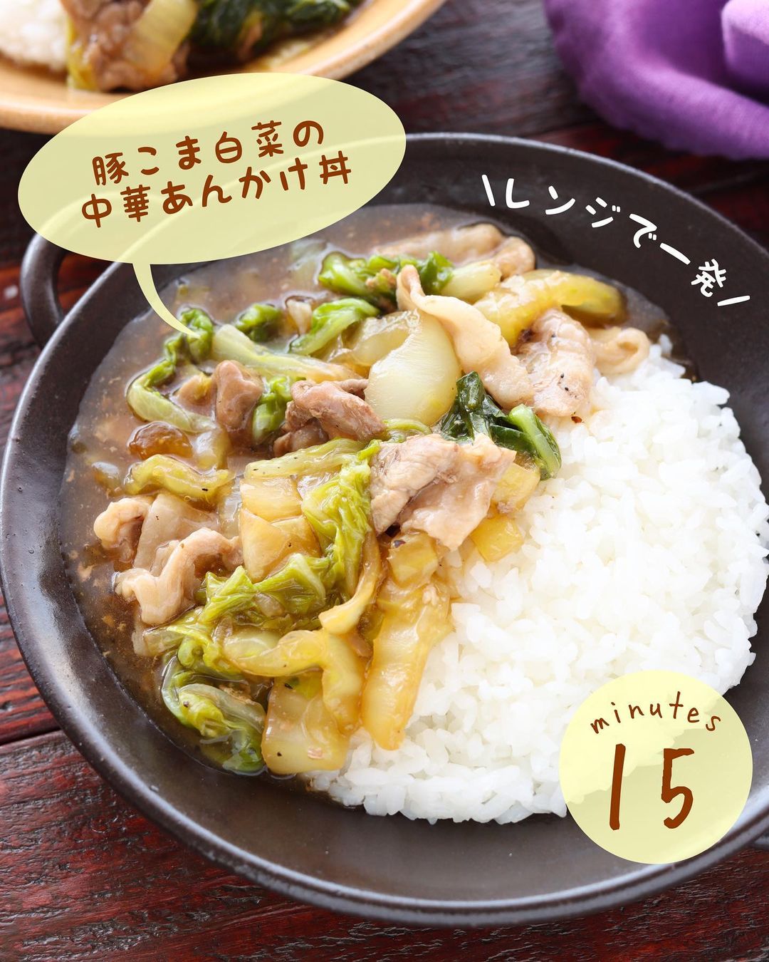 ” #豚こま ”×” #白菜 ”で作る絶品中華丼😋🍚