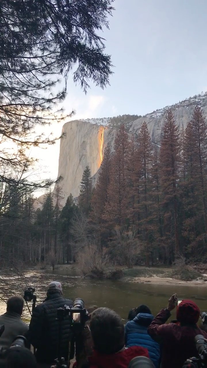 #Yosemite’s Firefall is created every year in mid to late February when the setting sun hits the waterfall at just the right angle to create a flow of orange and red, making it appear like a waterfall of fire. 🤯