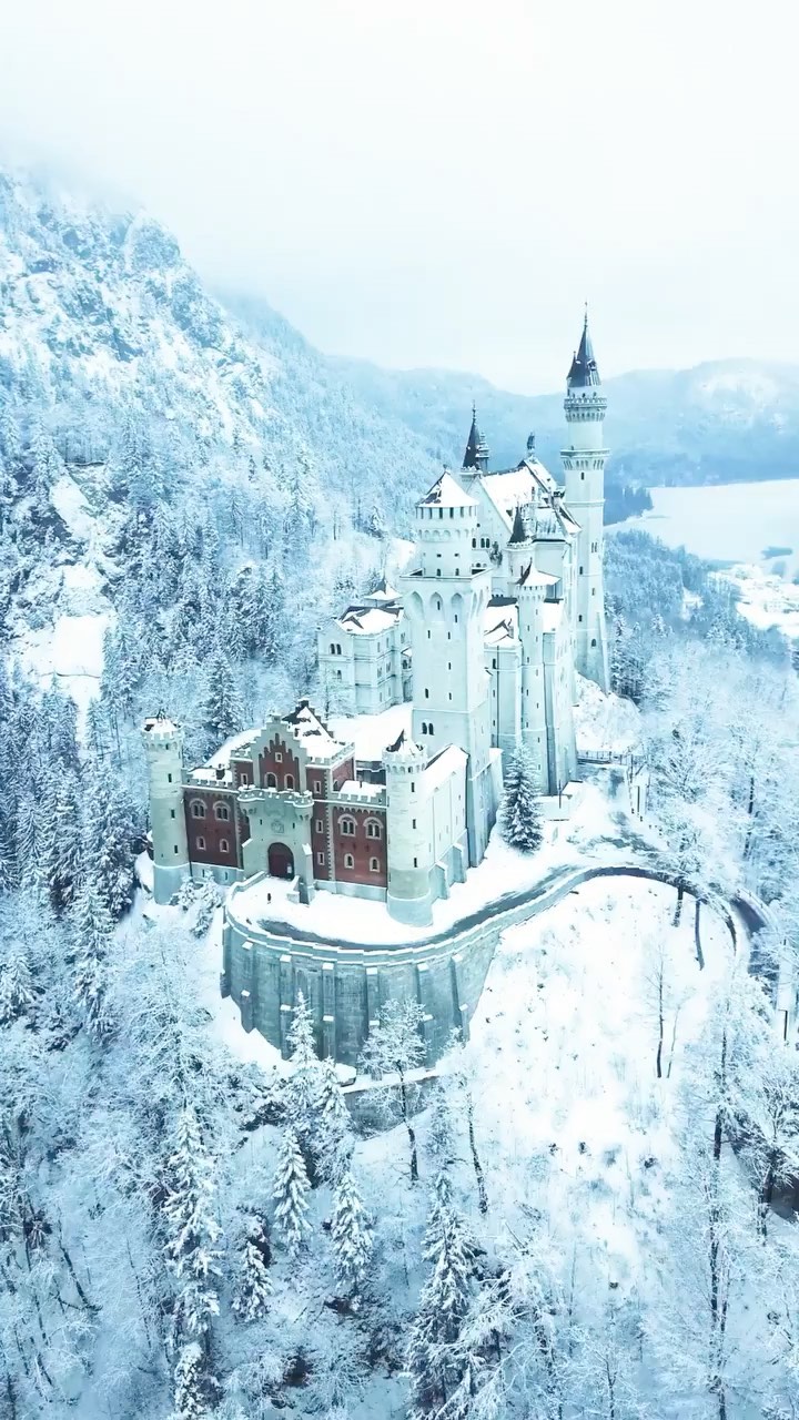 Sit back and watch an amazing Neuschwanstein Castle flyover during winter ❄️ 🏰