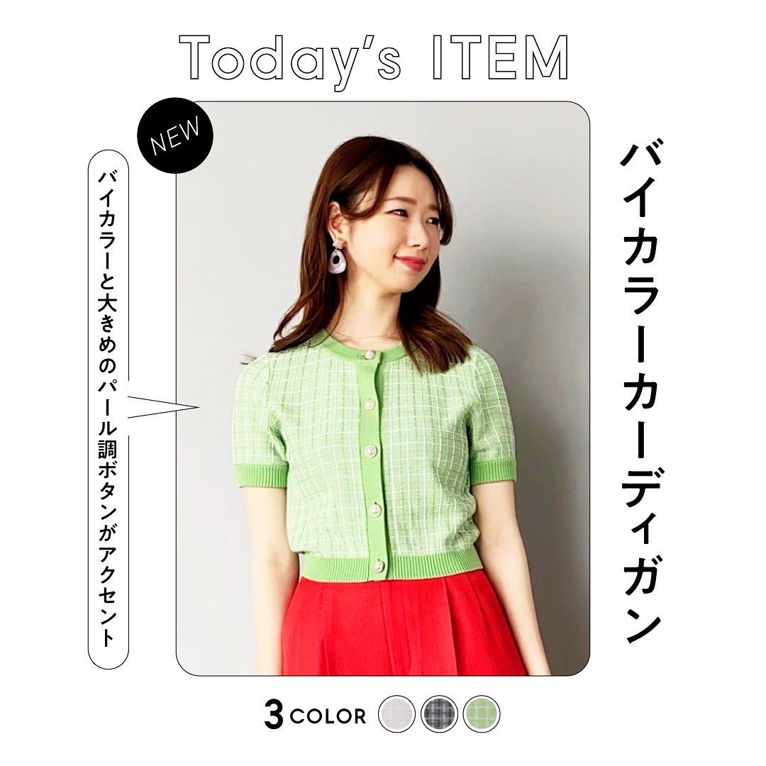 バイカラーと大きめのパール調ボタンがアクセントになった、存在感のある1枚です!