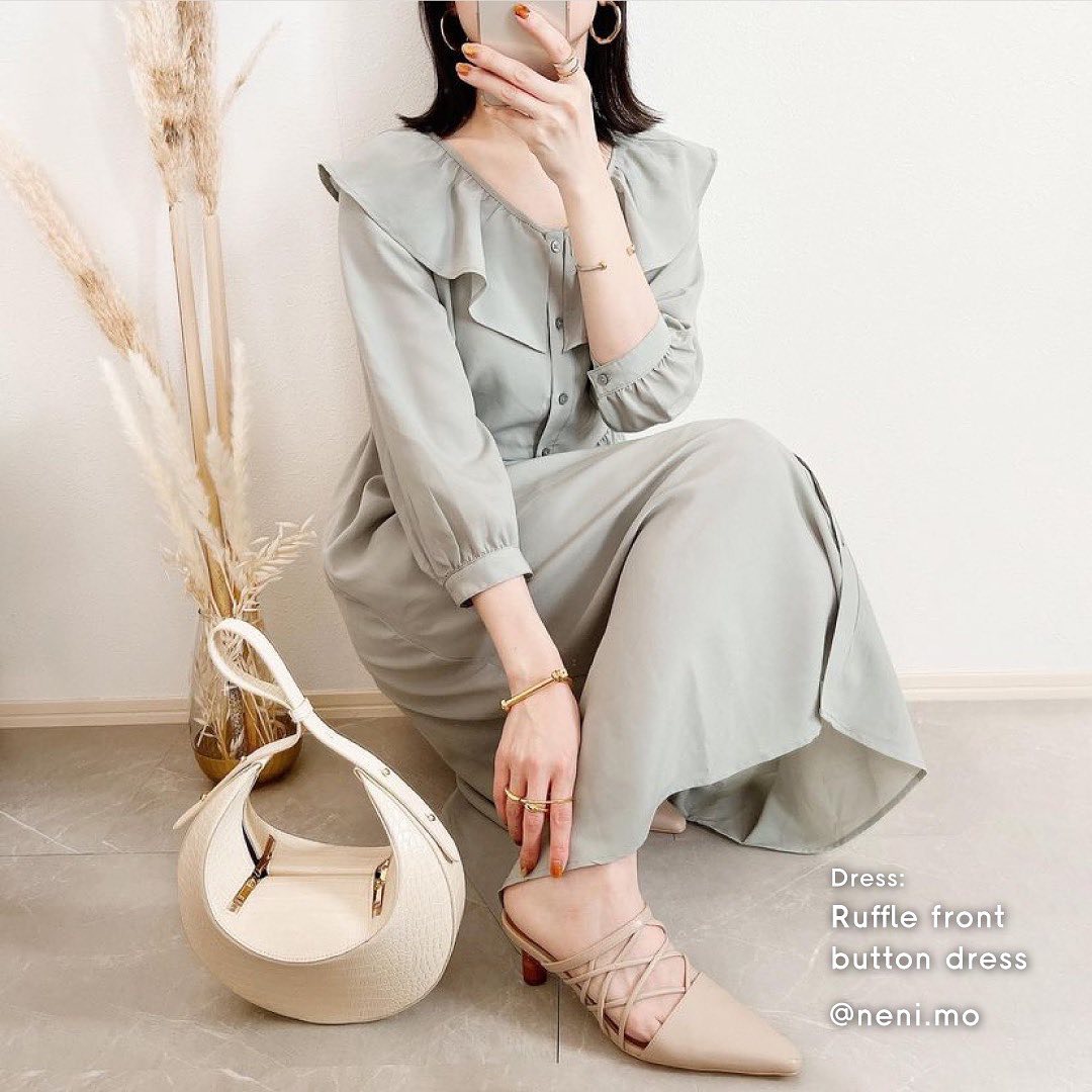 #ラッフルフロントボタンワンピース