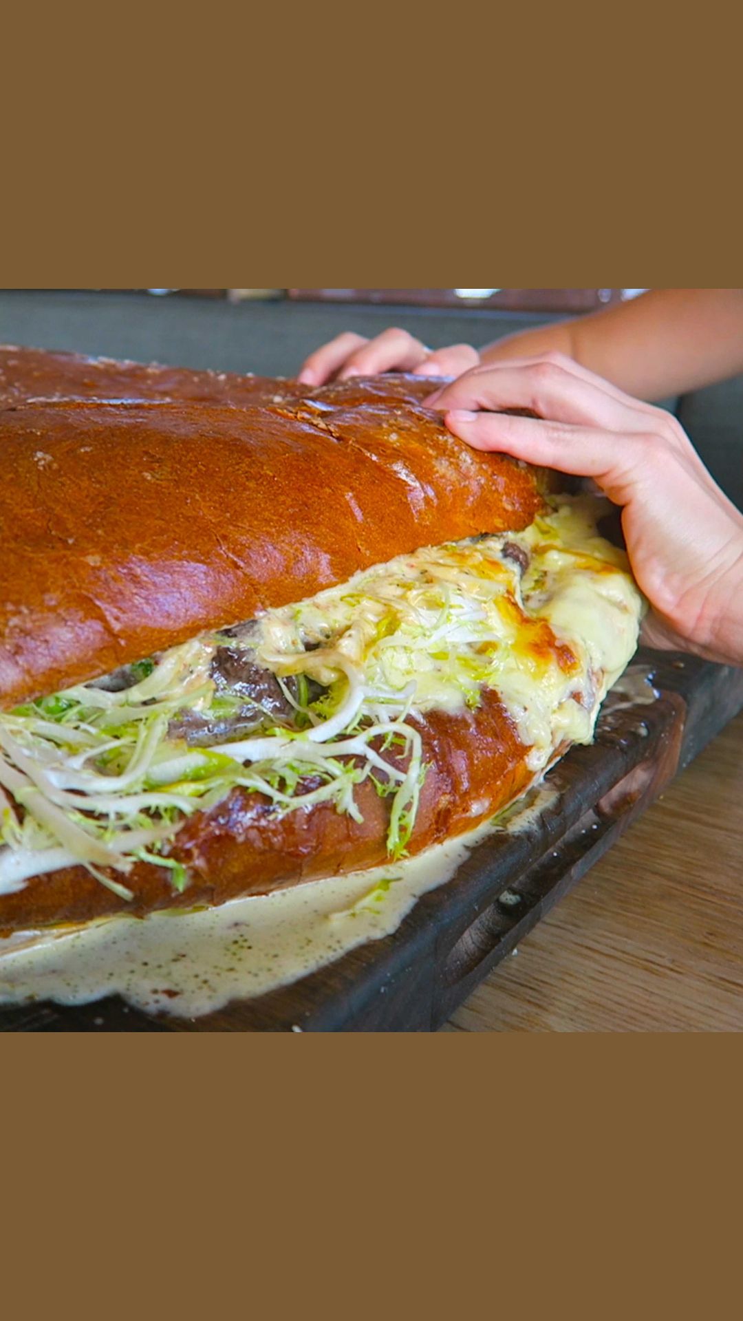 ロサンゼルスにある有名レストランの「#OTIUM」では、巨大バンズに巨大パティとカリカリベーコン、ラクレットチーズを挟んだ『超特大バーガー』が食べられるよ💥