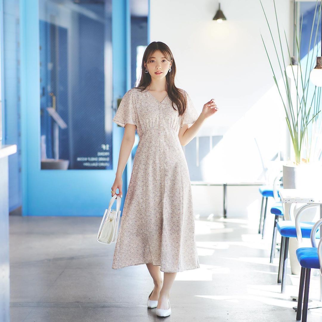 #フラワーVネックフレアスリーブワンピース