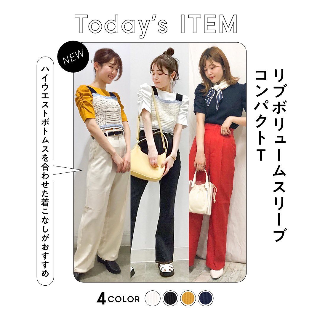 袖にギャザーを入れた立体感のあるボリュームスリーブがポイントのTシャツ。