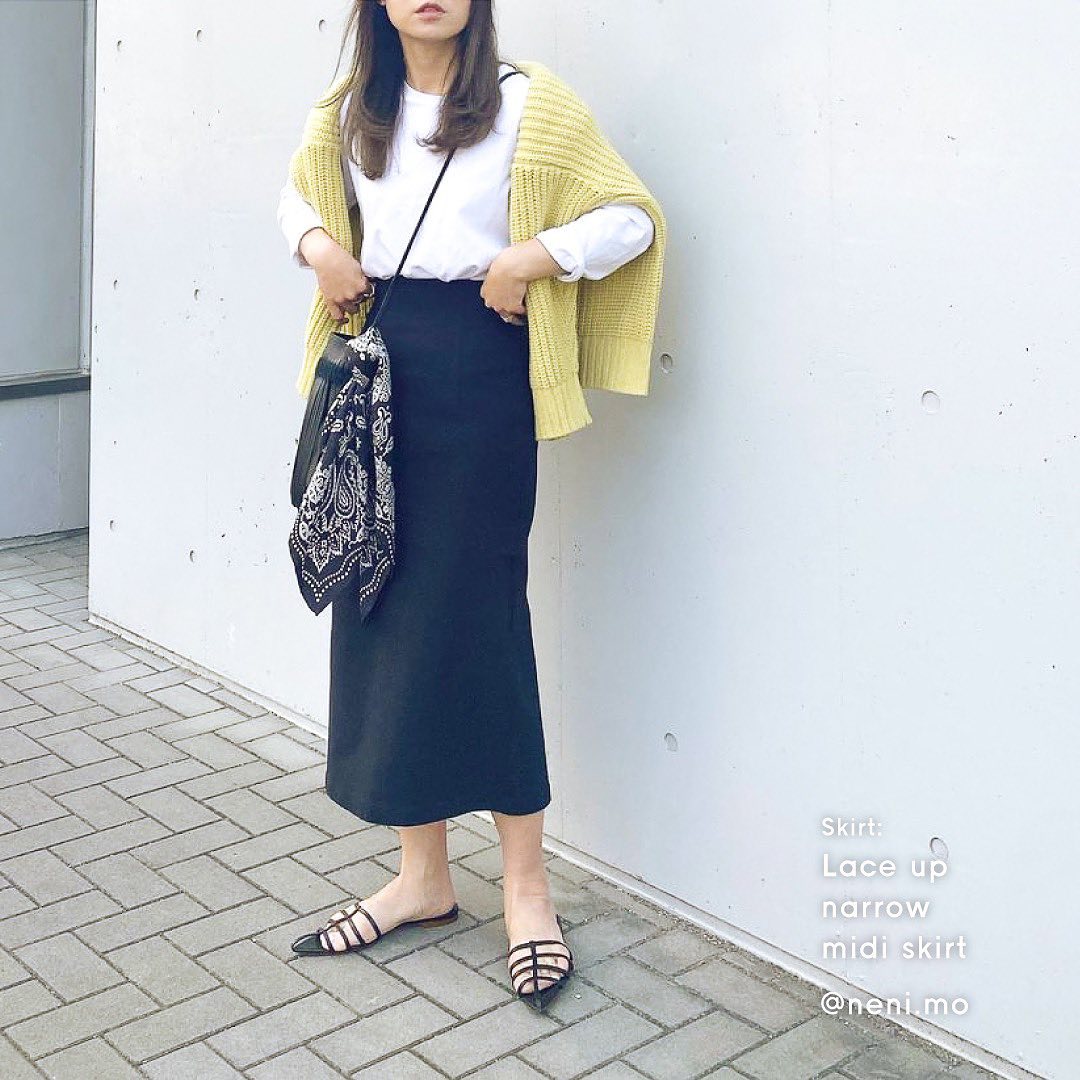 ハイウエスト&縦のラインを強調するダーツ入りのナロースカート。