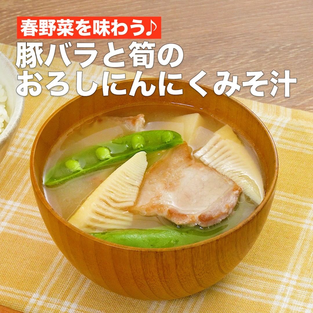 春野菜を味わう♪豚バラと筍のおろしにんにくみそ汁