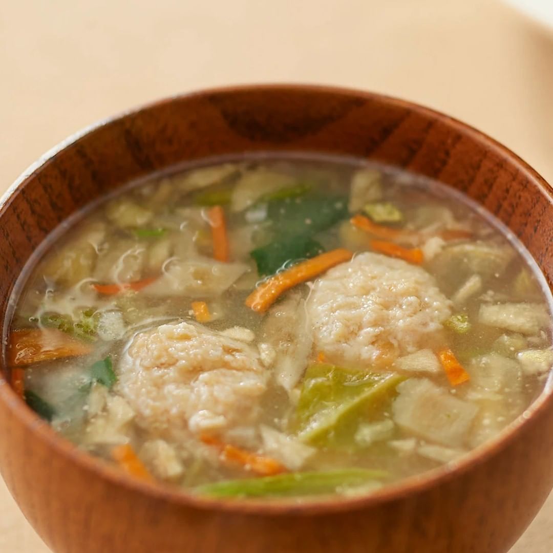 ▼『素材を生かした味噌汁 鶏つくねと根菜』