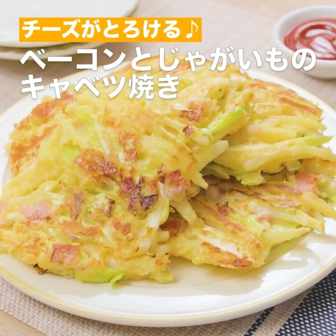 ②<チーズがとろける♪ベーコンとじゃがいものキャベツ焼き>