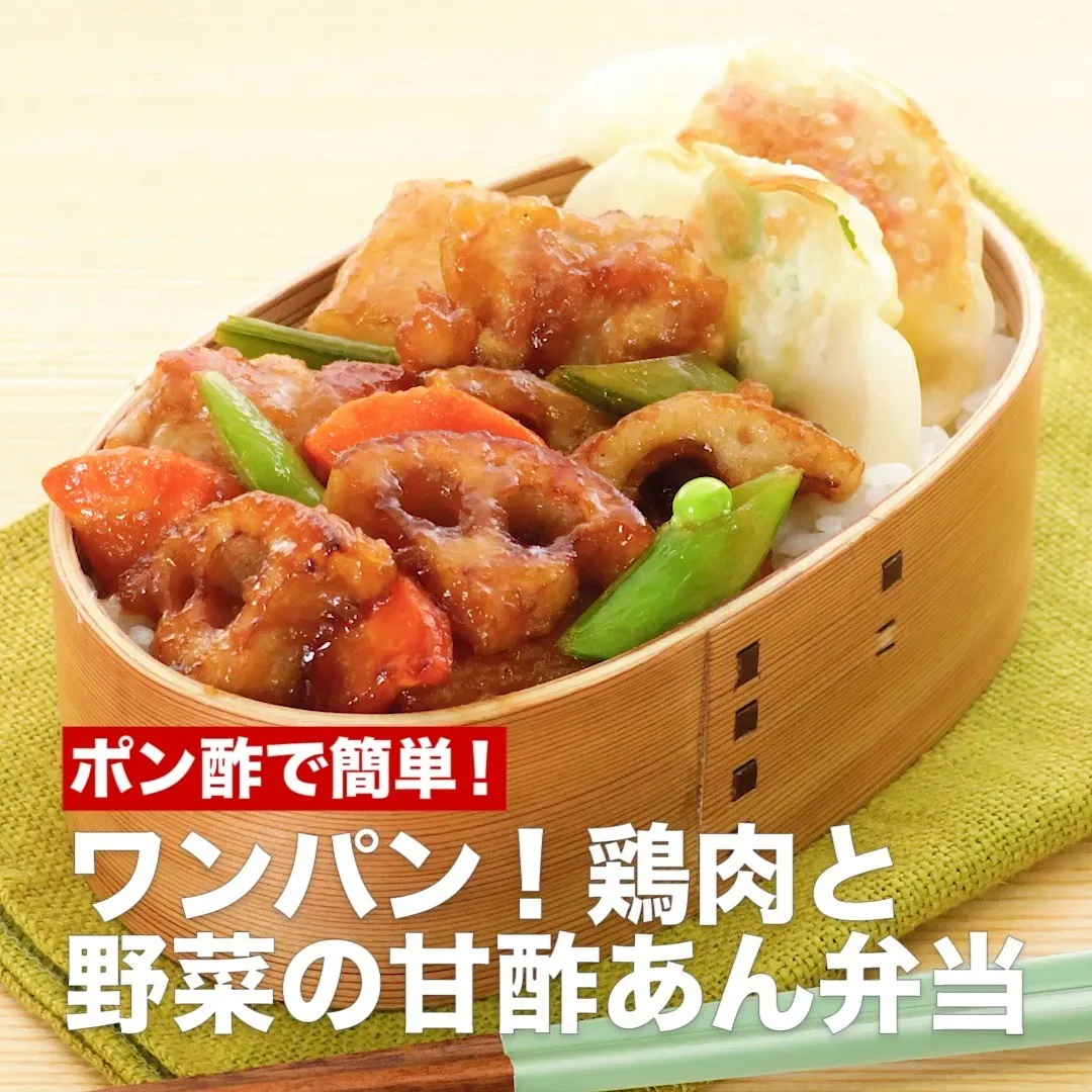 ⑤<ポン酢で簡単!ワンパン!鶏肉と野菜の甘酢あん弁当>