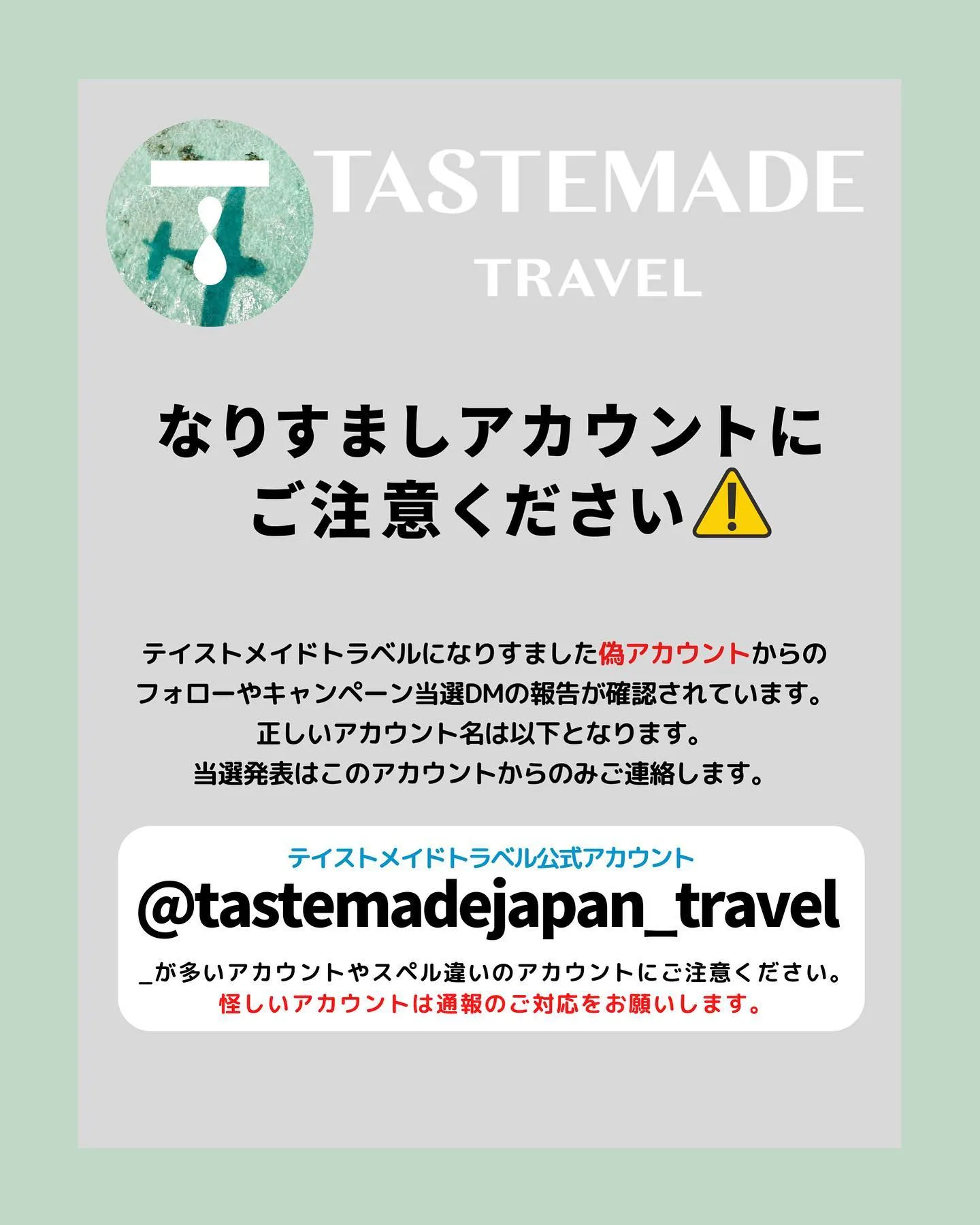 5月上旬に @tastemadejapan_travel のDMより当選のご連絡をいたします。