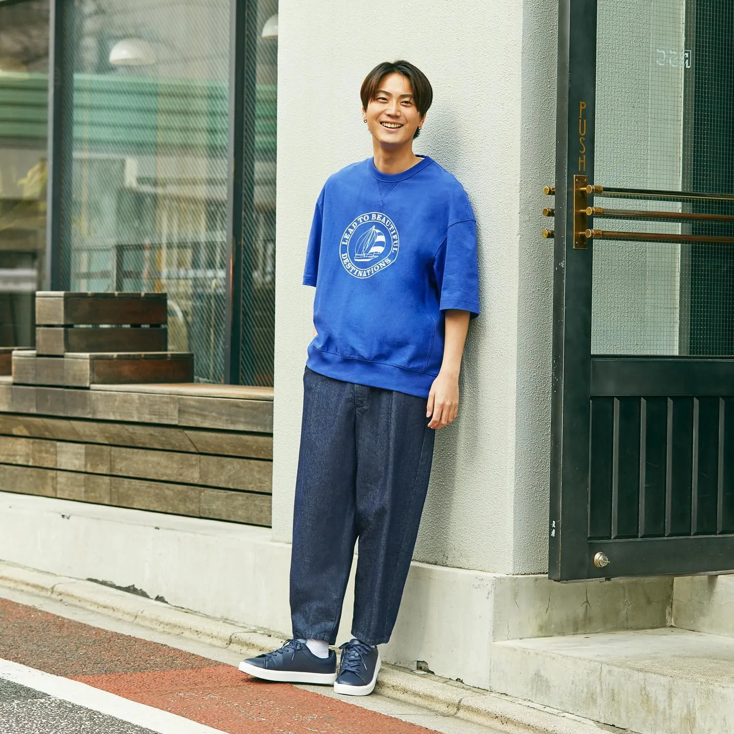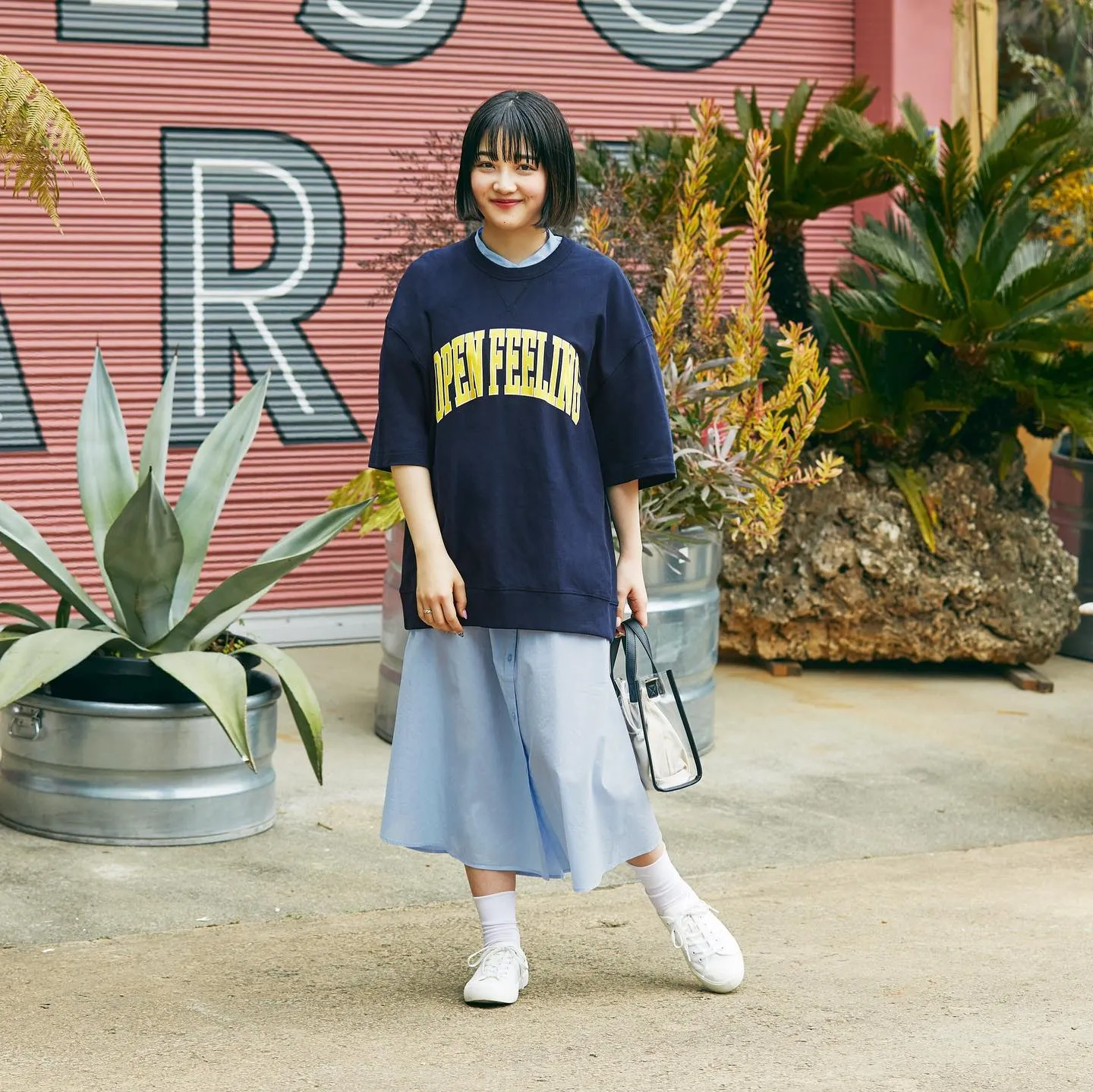 「カレッジロゴのスウェットは今季もトレンドですが、いかにもアメカジっぽくなりすぎずに今っぽく取り入れられるところも魅力だと思います。