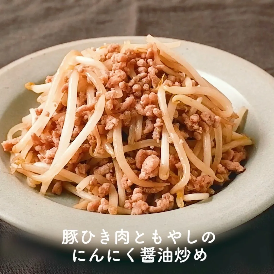 ⑤豚ひき肉ともやしのにんにく醤油炒め