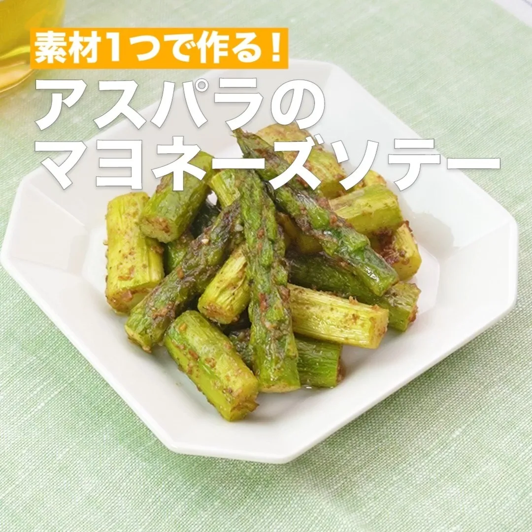①<素材1つで作る!アスパラのマヨネーズソテー>