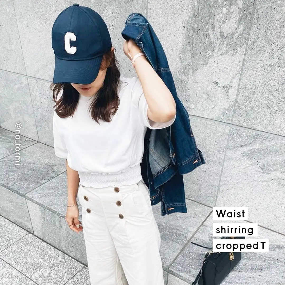 メリハリのあるシルエットがポイントのクロップドTシャツ。