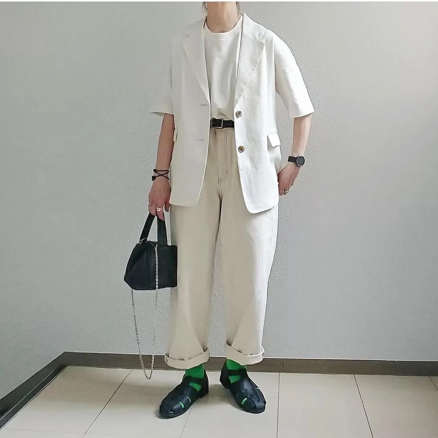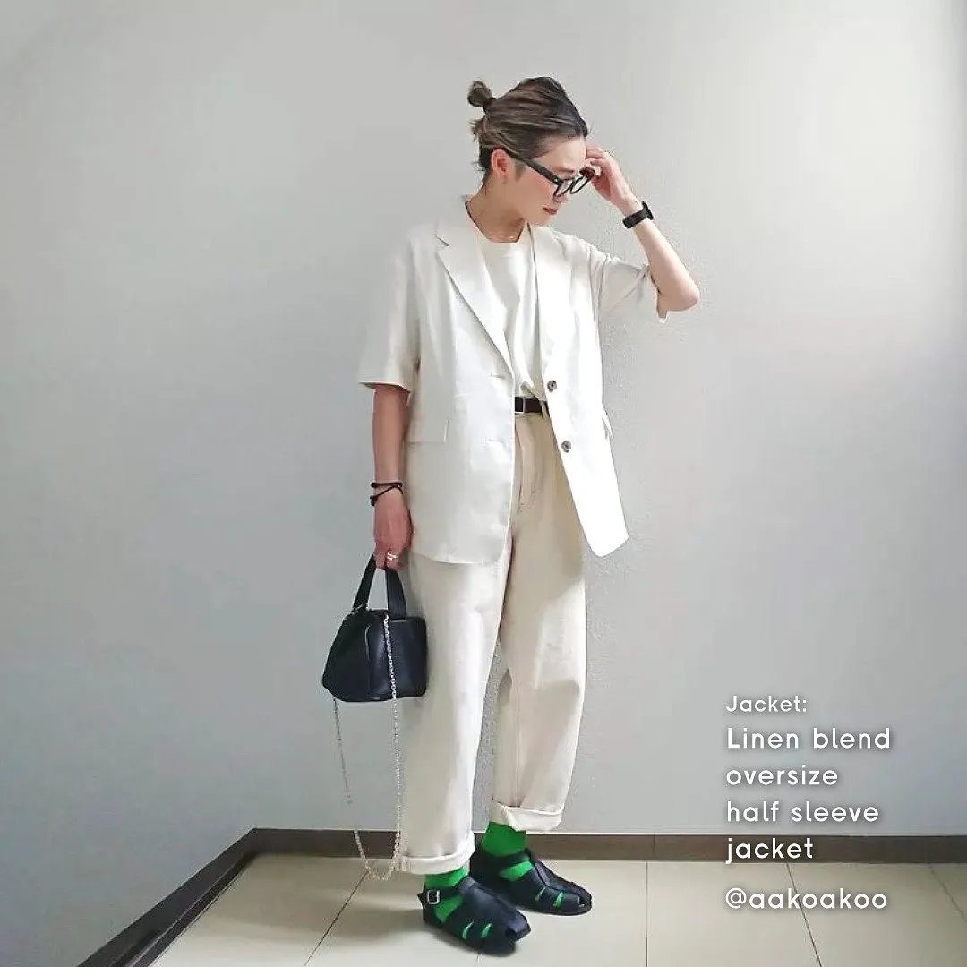 #リネンブレンドオーバーサイズハーフスリーブジャケット