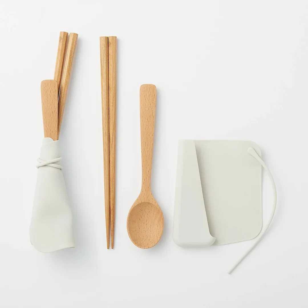 弁当箱と合わせて持っておくと便利なのが、洗って繰り返し使える『シリコーン 仕切りカップ』や、箸とスプーンなどかたちの違うものも一緒に包める『シリコーン カトラリーカバー』。