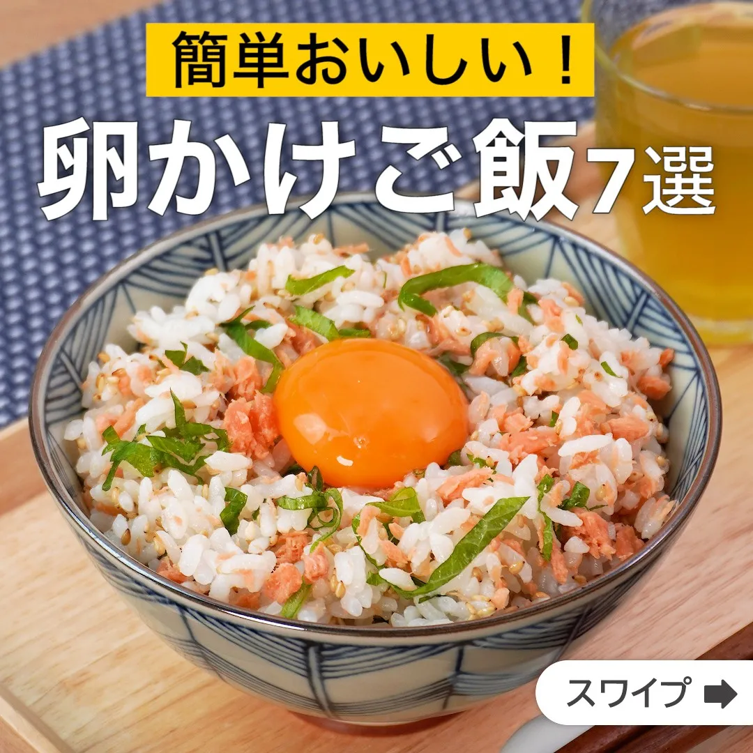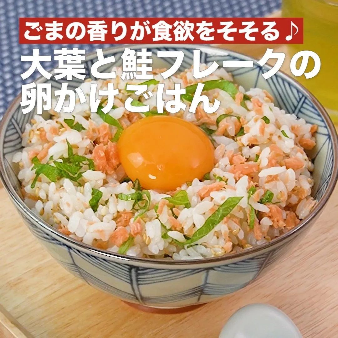 ①<ごまの香りが食欲をそそる♪大葉と鮭フレークの卵かけごはん>