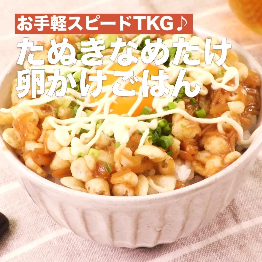 ③<お手軽スピードTKG♪たぬきなめたけ卵かけごはん>