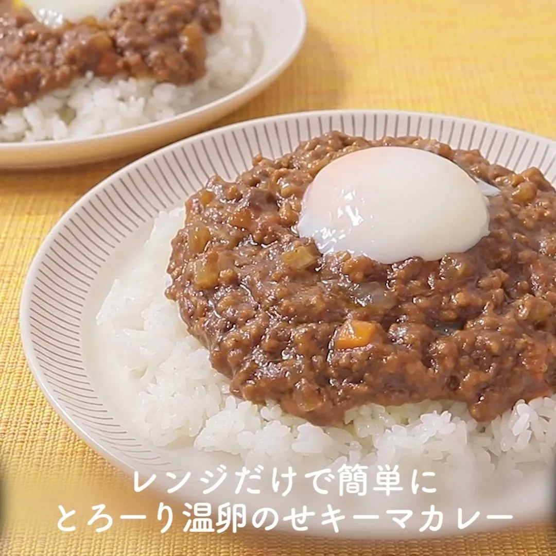 ①レンジだけで簡単に とろーり温卵のせキーマカレー