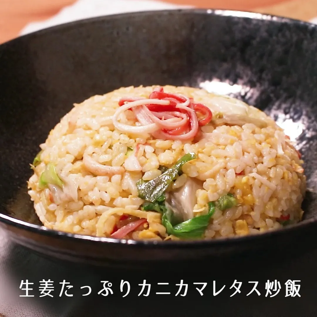 ④生姜たっぷりカニカマレタス炒飯