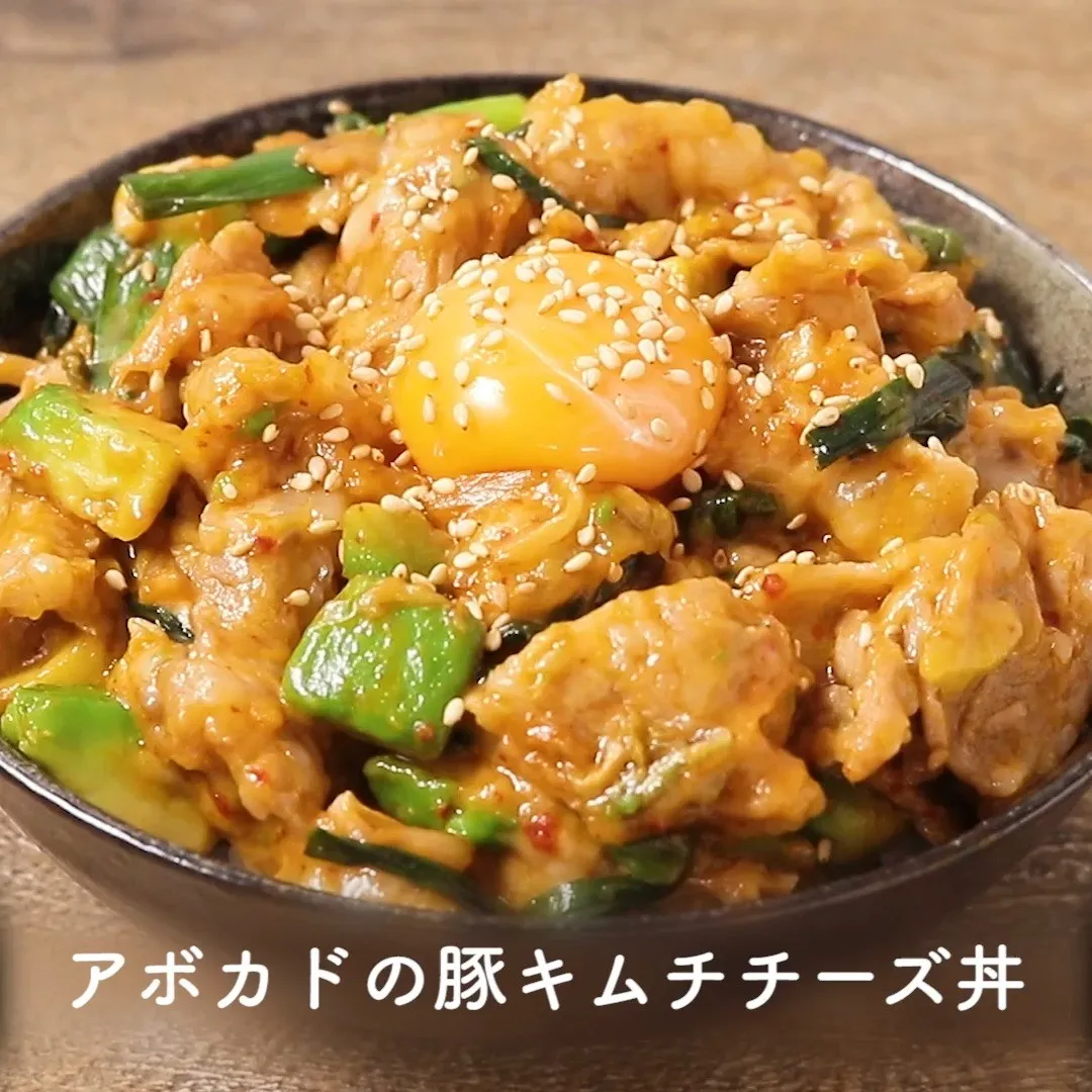 ⑤アボカドの豚キムチチーズ丼