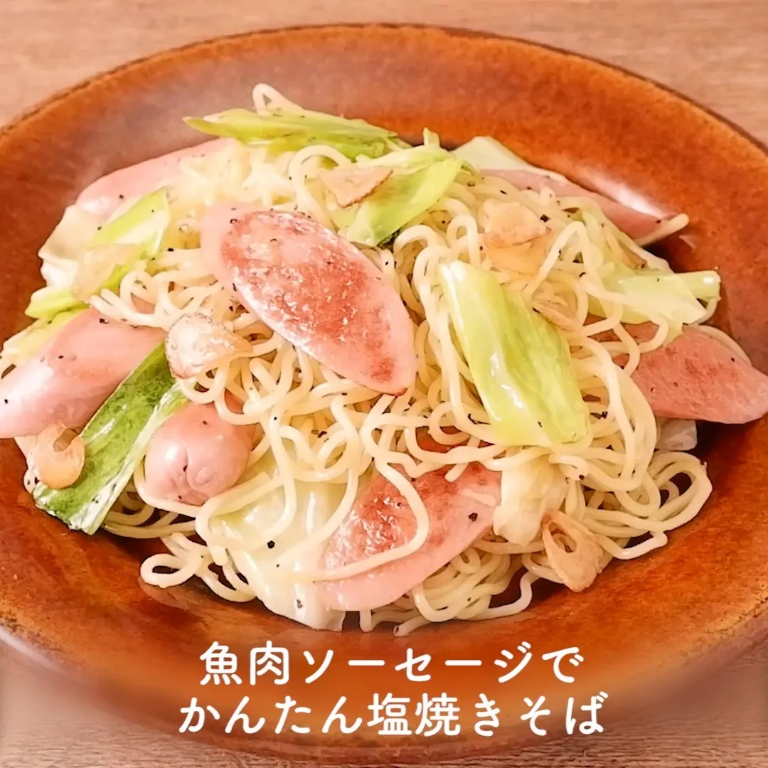 ③魚肉ソーセージでかんたん塩焼きそば