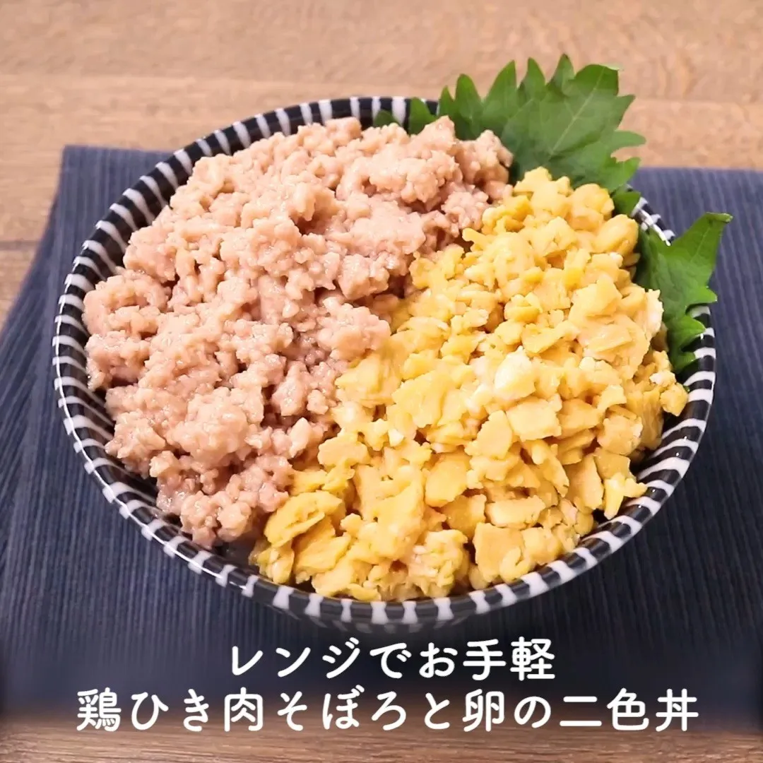 ②レンジでお手軽 鶏ひき肉そぼろと卵の二色丼