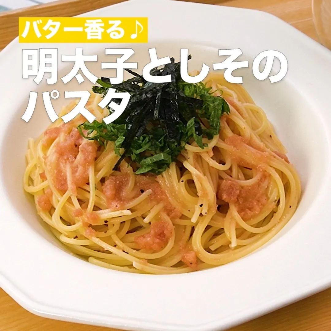 ①<バター香る♪明太子としそのパスタ>