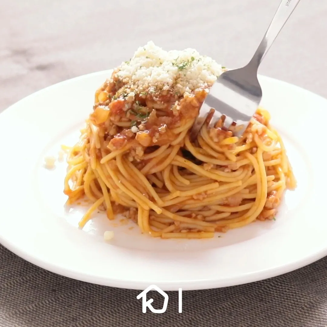 ④ワンパンでミートソーススパゲティ
