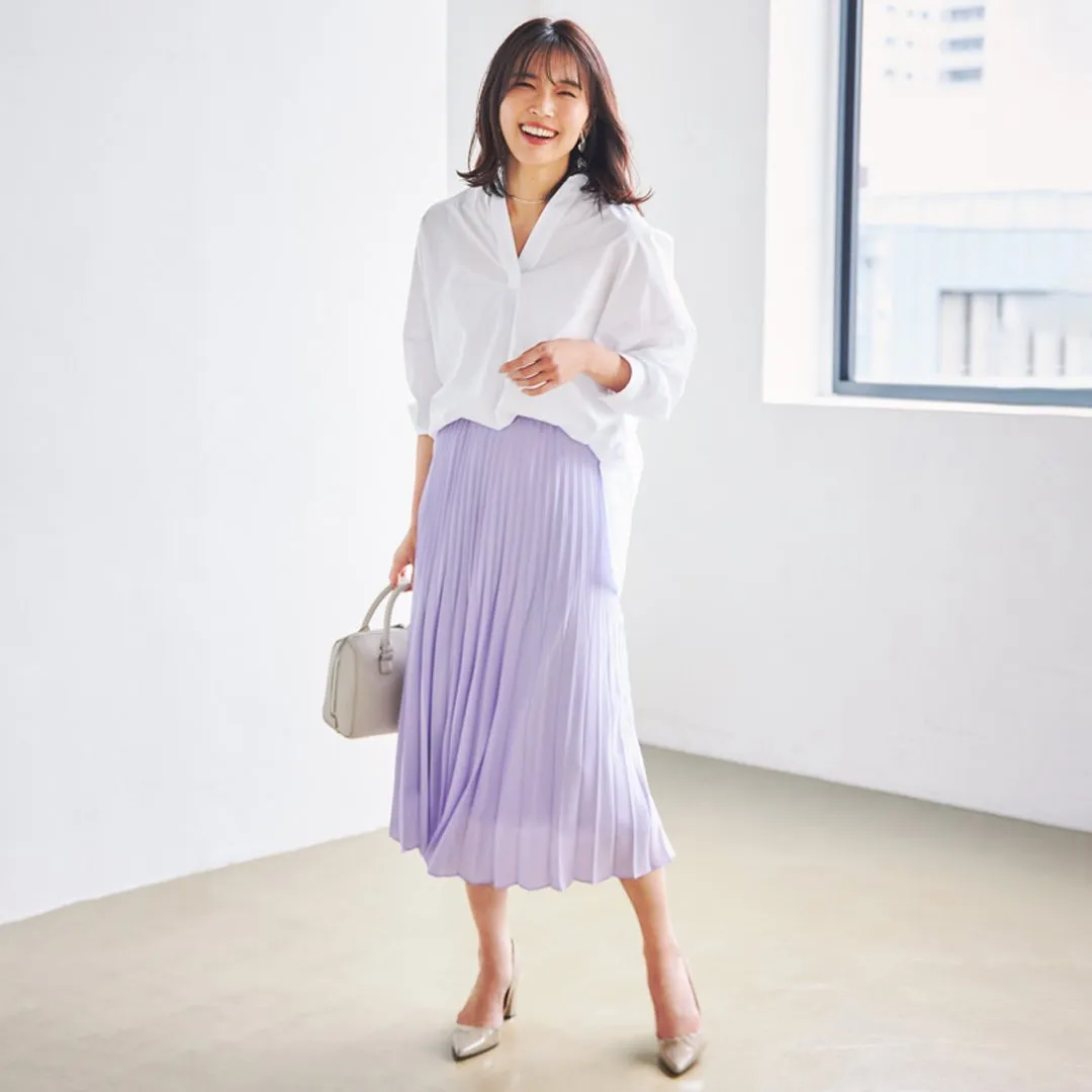 The airy chiffon skirt that sways with all your moves. You can have the best of both worlds – dress it up with a collared shirt or dress it down with your favorite tee. You can never go wrong with pink and purple when it comes to spring, right?