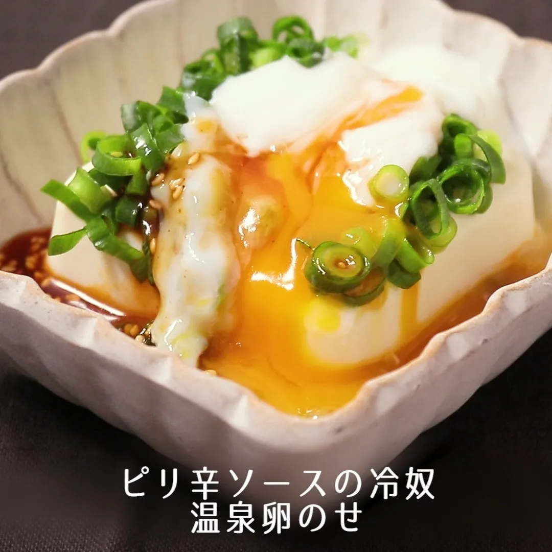 ③ピリ辛ソースの冷奴 温泉卵のせ