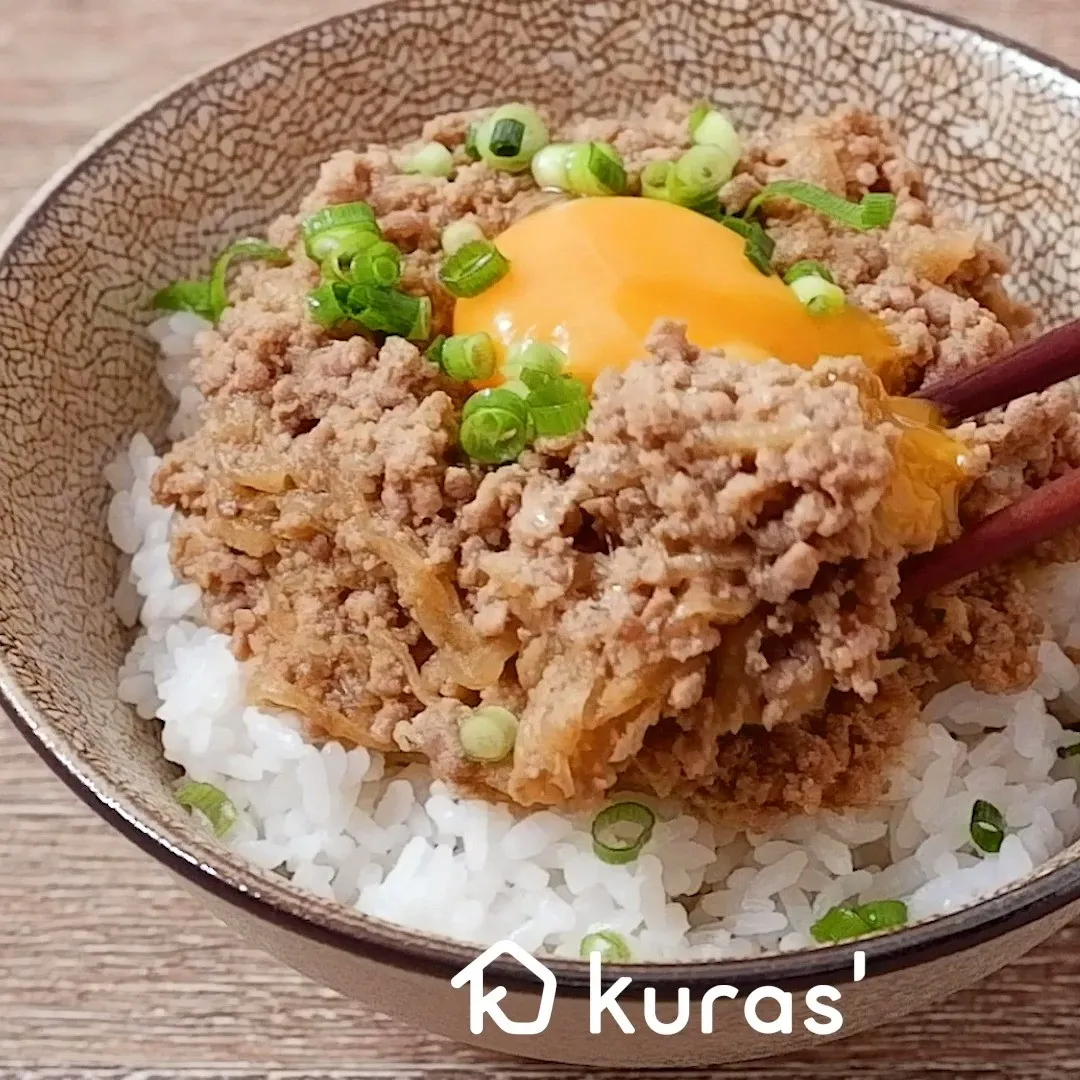 ⑤レンジで簡単 焼肉のたれでそぼろ丼