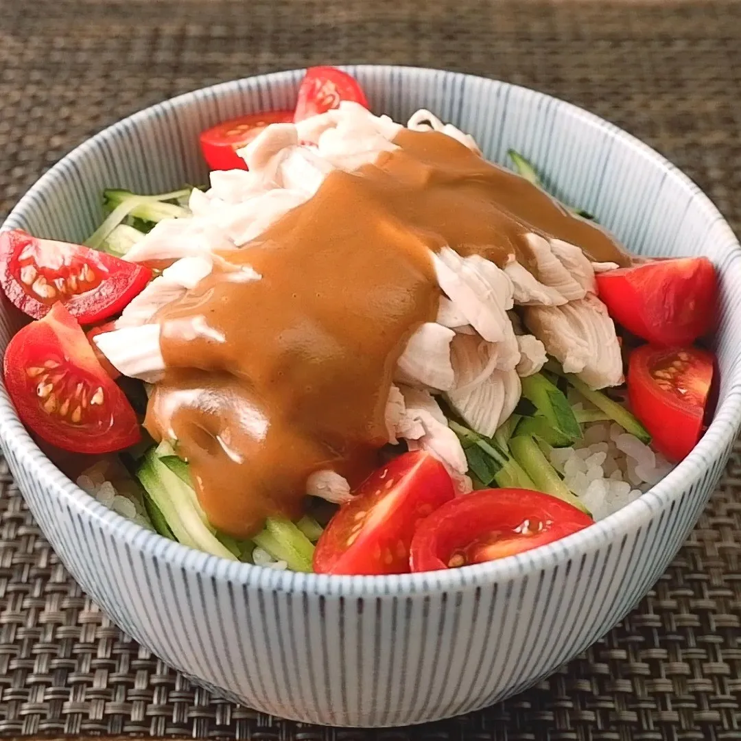 ②焼肉のタレで簡単 鶏むね肉バンバンジー丼