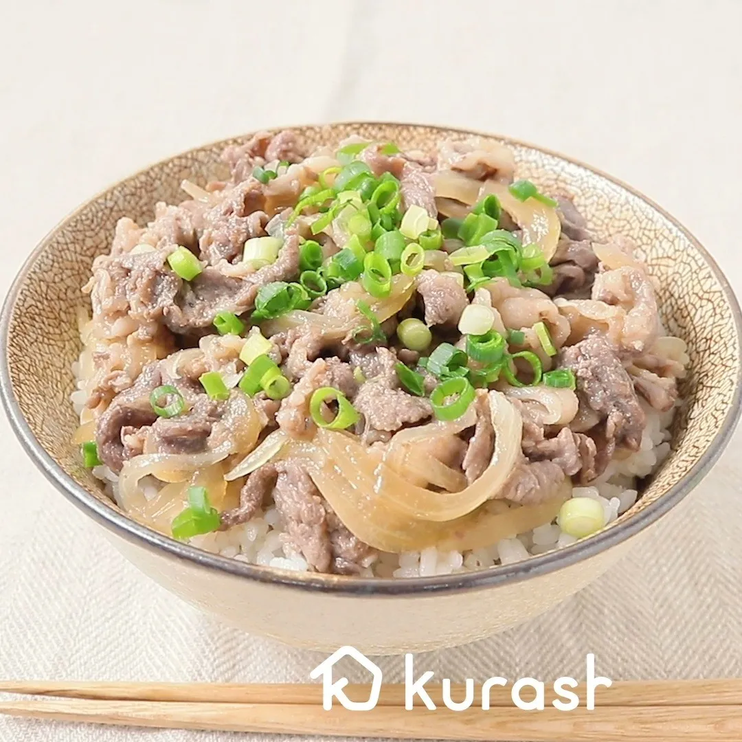 ①レンジで簡単 シンプル牛丼