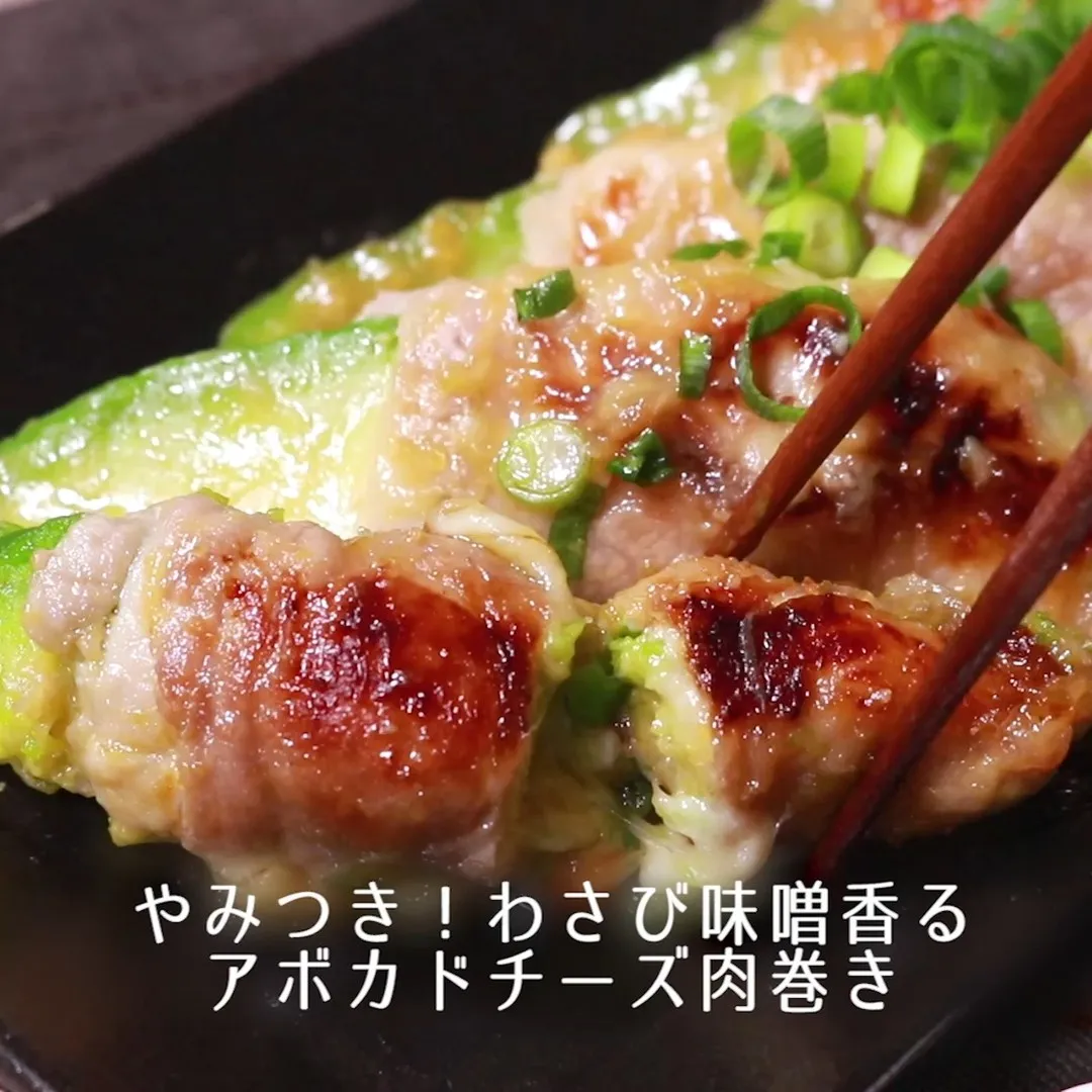 ③やみつき!わさび味噌香るアボカドチーズ肉巻き