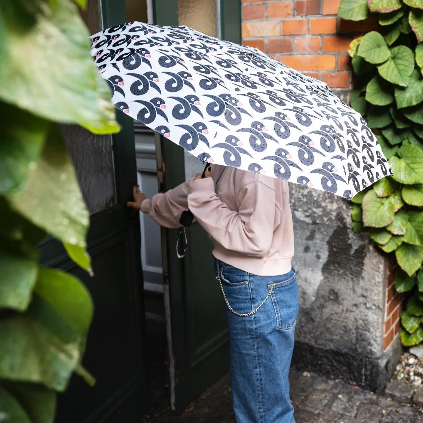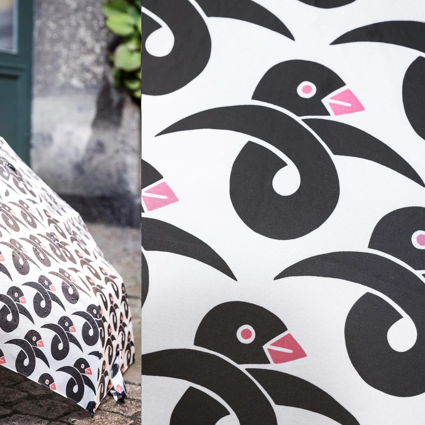 小鳥のパターンがユニークなKNALLA/クナラ 傘は、デザイナーが日本を訪れた際に買ったしおりに押されたスタンプをモチーフに考案されました。