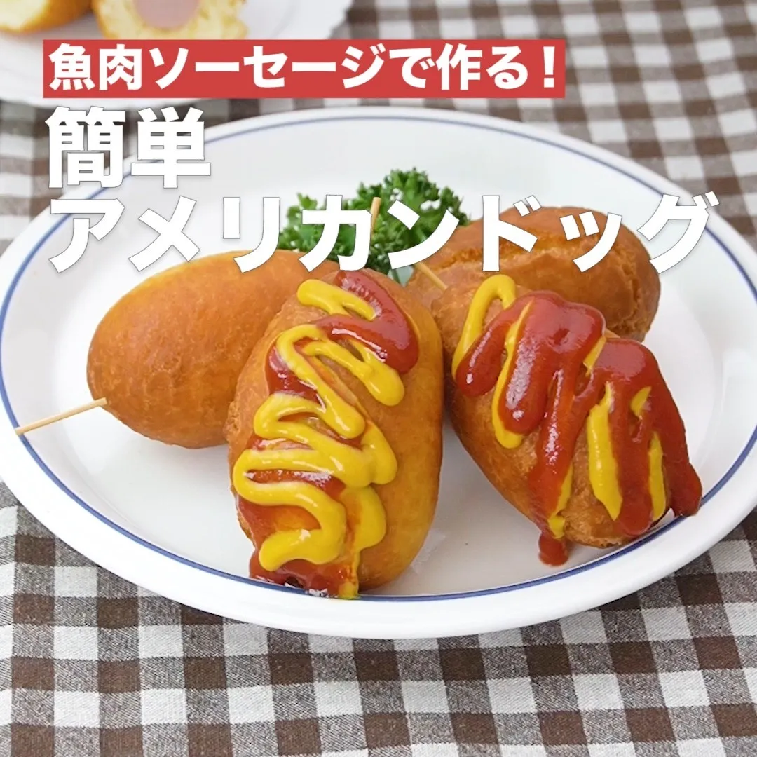 ホットケーキミックスと魚肉ソーセージを使って、手軽に作れてお子様も喜ぶアメリカンドッグのレシピです!しっかりと揚げるので外側はカリッと、中ふんわり食感がクセになること間違いなし♪