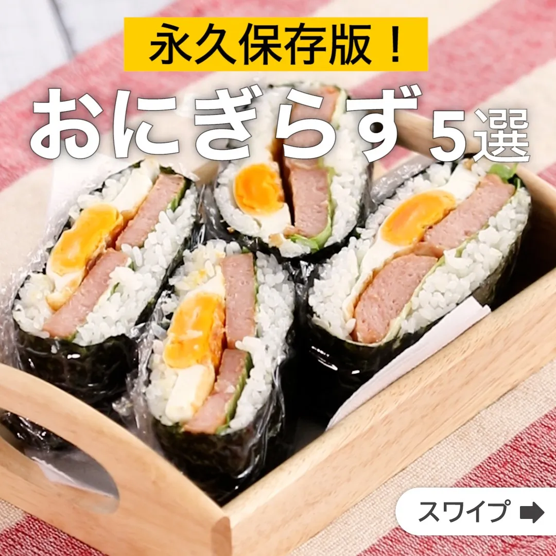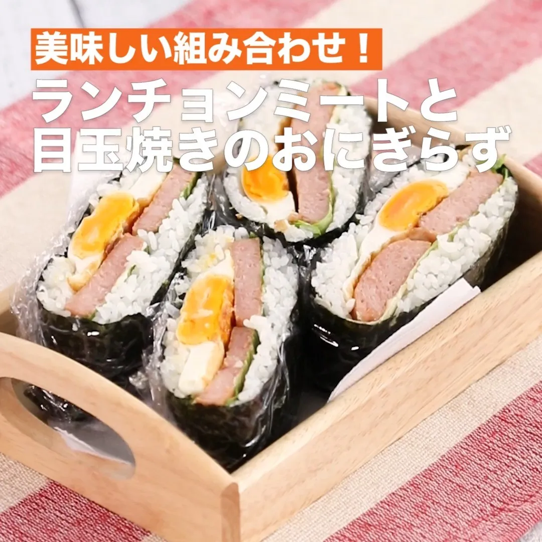 ①<美味しい組み合わせ!ランチョンミートと目玉焼きのおにぎらず>