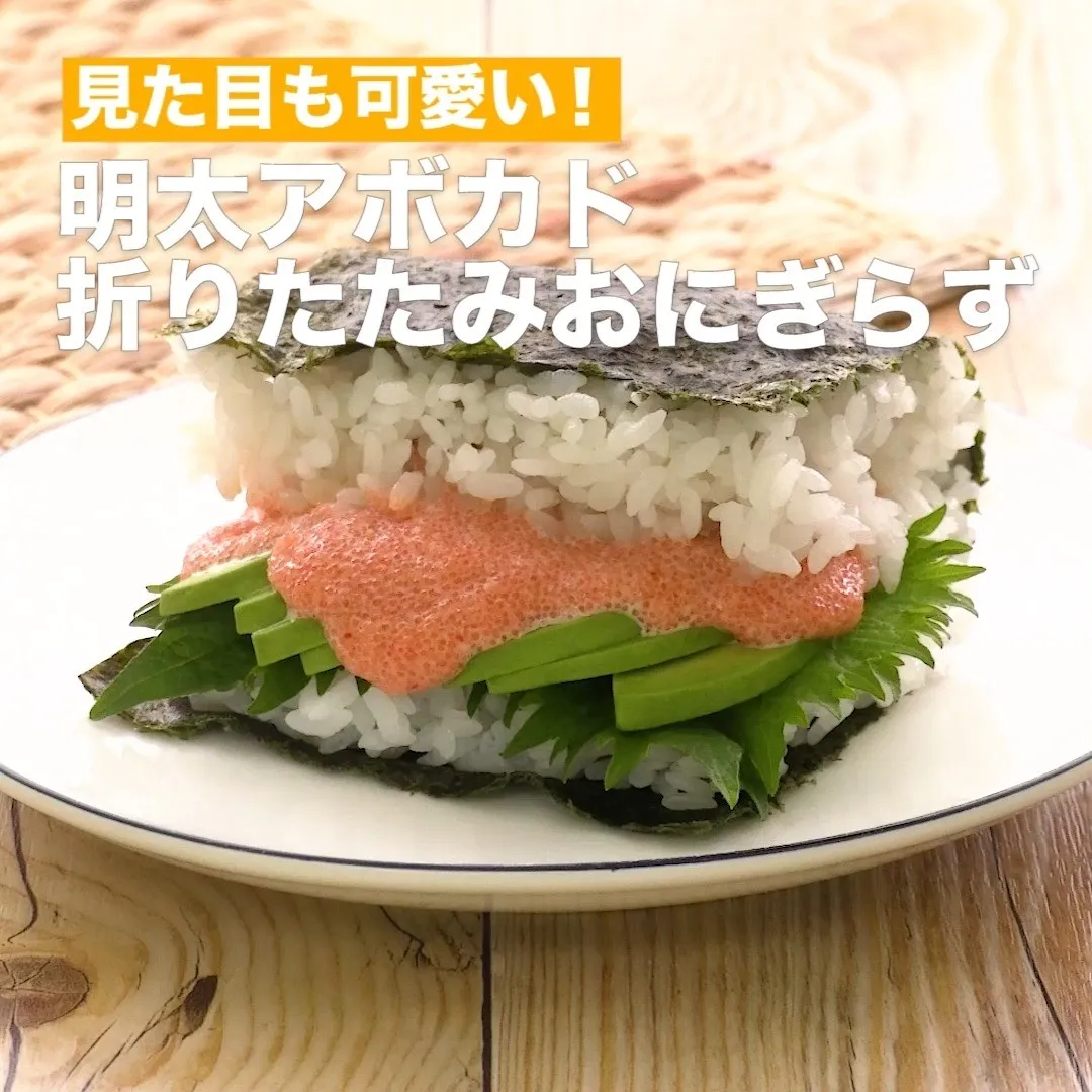 ⑤<見た目も可愛い!明太アボカド折りたたみおにぎらず>